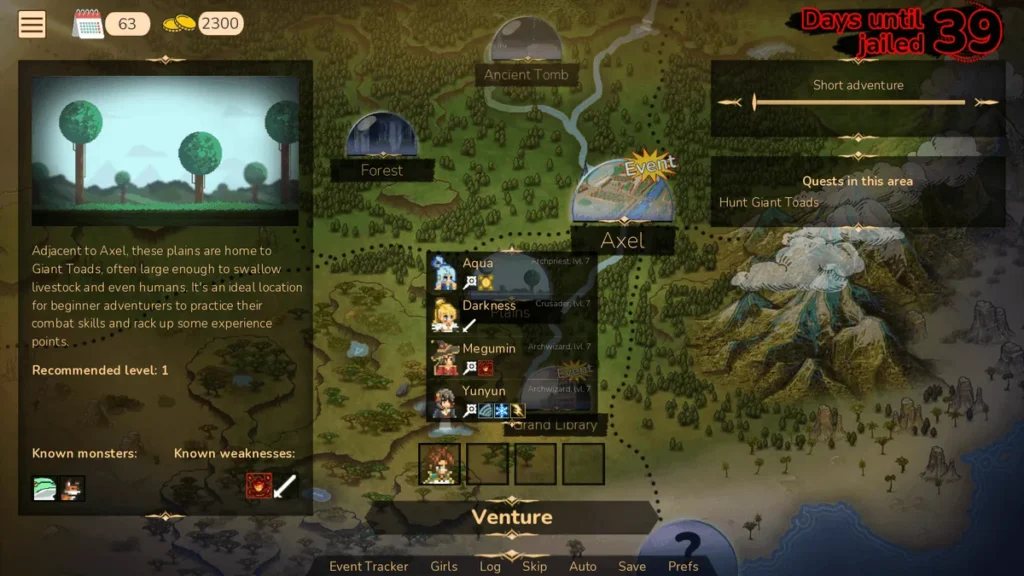 You play as a seasoned adventurer tasked with, you guessed it, training a party of rookie would-be-heroes. Your crew is a delightful parody of the classic lineup: a chuunibyou arch-wizard with more ego than mana, a crusader who’s all justice and no common sense, and a… well, let’s just say the priestess brings her own unique brand of “holy” support. 😇 The writing is sharp, witty, and perfectly walks the line between paying homage and poking fun. The dynamic dialogue changes based on your choices, making your interactions feel alive and often laugh-out-loud funny. It’s this authentic embrace of Konosuba’s chaotic, comedic spirit that makes the world so compelling to engage with, setting the stage for all the other Adventurer Trainer features.