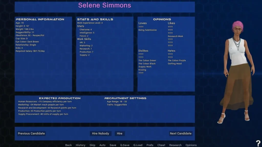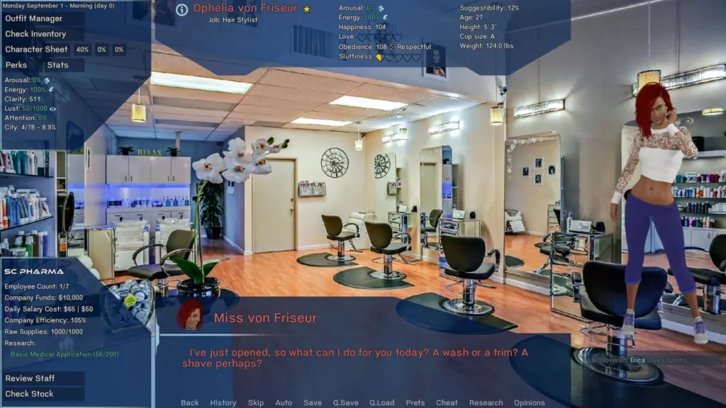 Your lab bench is filled with base serums and modifiers. Want to increase someone’s obedience? You’ll start with a base serum for that. But maybe you want that obedience to be linked to feelings of affection, or perhaps you want it to manifest only in specific situations? That’s where modifiers come in. The game tracks a web of character stats—like Obedience, Arousal, Affection, Submissiveness, and more—that are directly altered by your creations. This isn’t just a simple “slider goes up” system. Changing one stat can influence others, and characters will react to their new mental state based on their core personality.