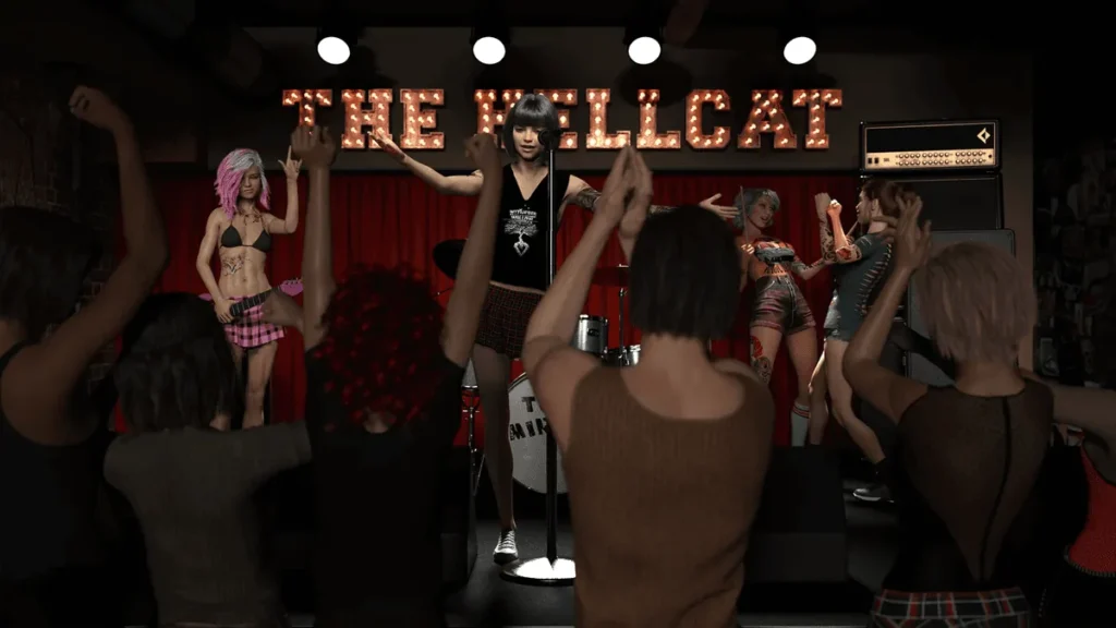 Ever stumbled into a rock club where every tattooed rocker girl steals your breath and choices lead straight to mind-blowing encounters? That’s The Hellcat Lounge, the erotic visual novel that’s got me hooked since I first fired it up last summer. You play Noah, an everyday guy whose life flips when he dives into the gritty LA rock scene, jamming with his band and chasing hedonistic nights. With stunning 3D animations, quick-paced lewd scenes, and branching paths that change everything, this game’s all about raw passion and zero filler. If you’re craving a lewd VN focused purely on story and sex, stick around—I’ll share my wild ride through The Hellcat Lounge and tips to max your fun.